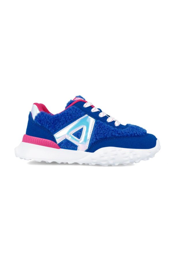 Deportivo borreguillo de color azul con suela blanca y cordones del mismo color. Tallaje desde el 28 al 36.