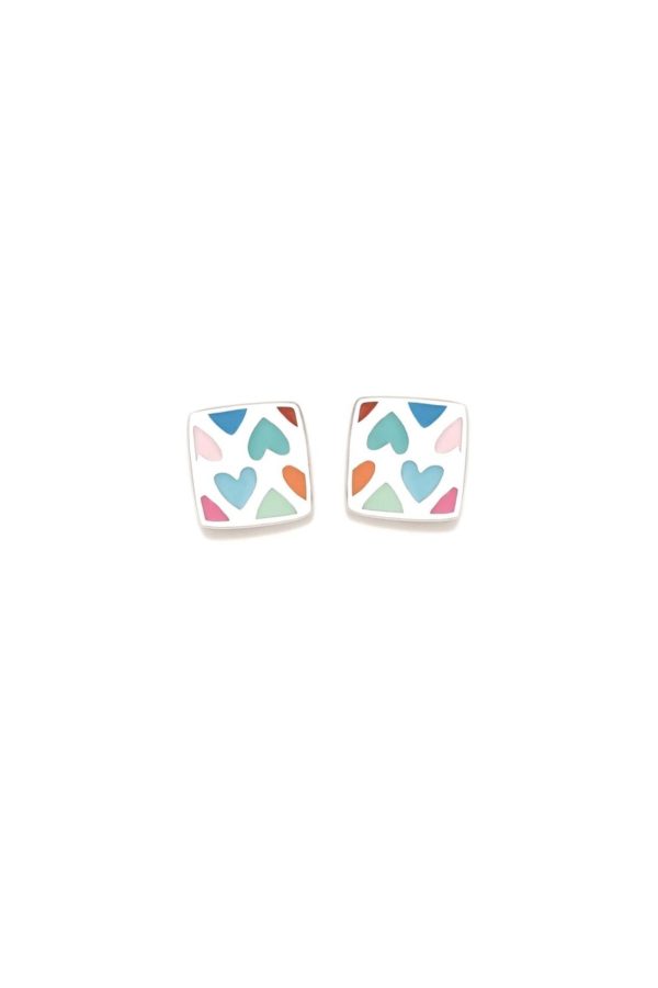 Pendientes de plata de ley y baño de rodio, con esmalte y cierre de presión. Colección: MIC. Por temas de higiene no se aceptan cambios ni devoluciones a no ser por taras.