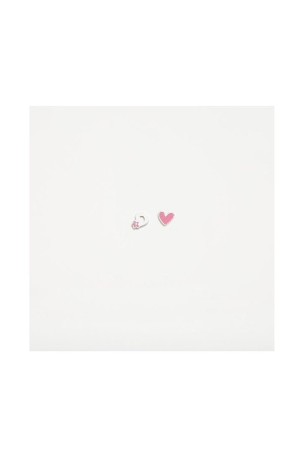 Pendientes abecederaio, letra D con una flor rosa esmaltado y el pendiente que hace pareja es un corazón con esmalte en el mismo color. Pendientes: Por razones de higiene, sólo se admiten devoluciones de artículos rotos o defectuosos de fábrica.
