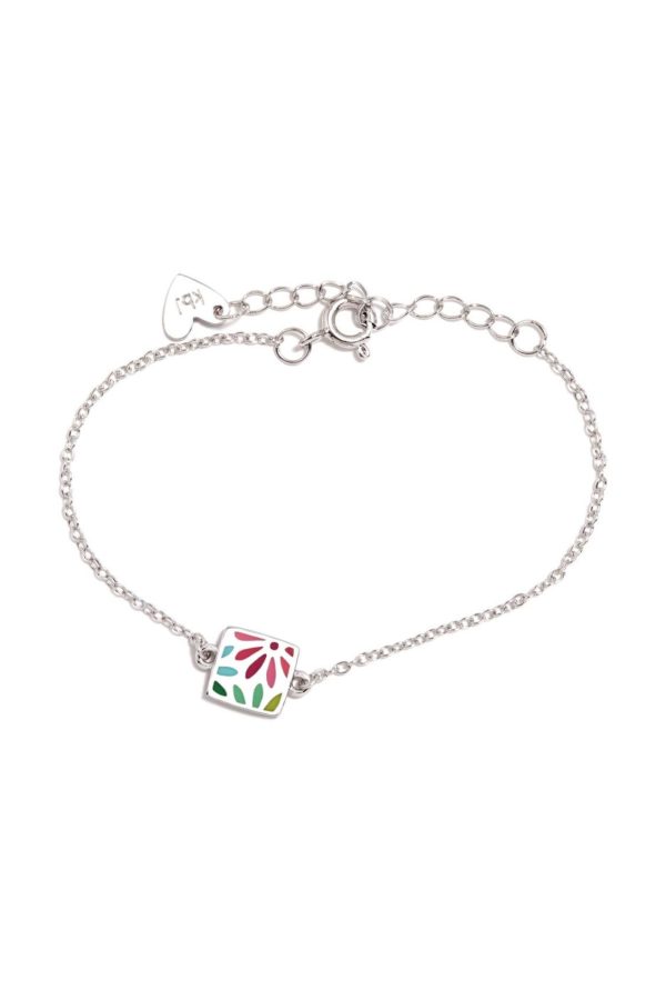 Pulsera de plata de ley con baño de rodio y esmalte. Tiene cadena de extensión. COLECCION: ARCOIRIS. Pendientes: Por razones de higiene, sólo se admiten devoluciones de artículos rotos o defectuosos de fábrica.