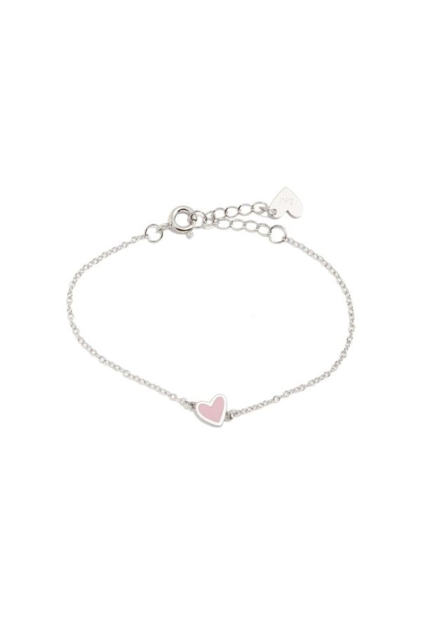 Pulsera de plata con un corazon esmaltado en color rosa palo. Colección : New Super Agatha