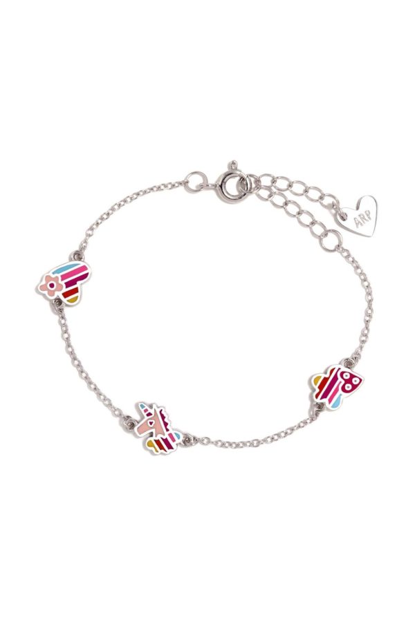 Pulsera de plata de ley con baño de rodio y esmalte. Tiene cadena de extensión. COLECCION: ARCOIRIS. Pendientes: Por razones de higiene, sólo se admiten devoluciones de artículos rotos o defectuosos de fábrica.