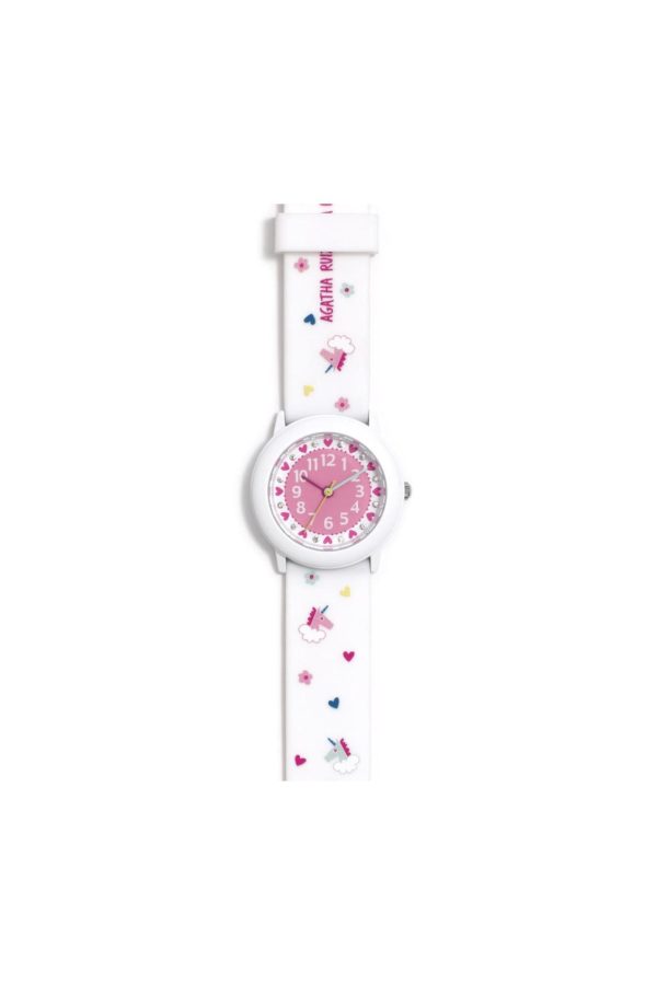 Reloj con caja aloy pintada, dial con piedras y correa de silicona estampada. Reloj pequeño de pila con correa de PVC. NO SE PUEDE MOJAR.